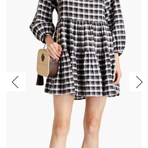 GANNI «PRINTED LIGHT CREPE SMOCK MINI DRESS» i fargen «snake starfish» med et slangeskinn / leopard lignende mønster. Kjolen er helt ny og ubrukt, lappene er fortsatt på.