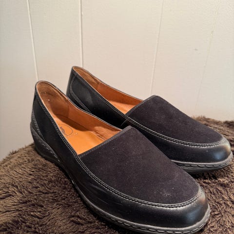 Klaveness Aktiv bred lest sko / loafers, sort skinn, str. 7 1/2