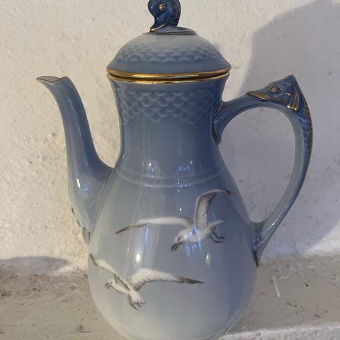 11 kopper,12 tallerkner, kaffekanne, sukkerkopp, 2 lysestaker, fløtemugge,fat. Alle koppene og tallerknene har forskjellige motiv fra Norges byer