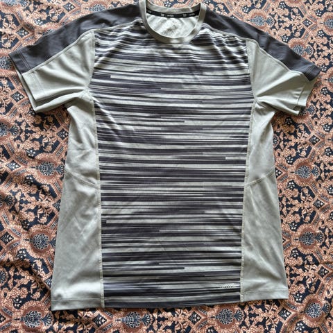 Helt ny.Kjøpt feil størrelse. Slim passform.Har selv L størrelse og oppleves som liten.Trolig passer mer til M enn L.