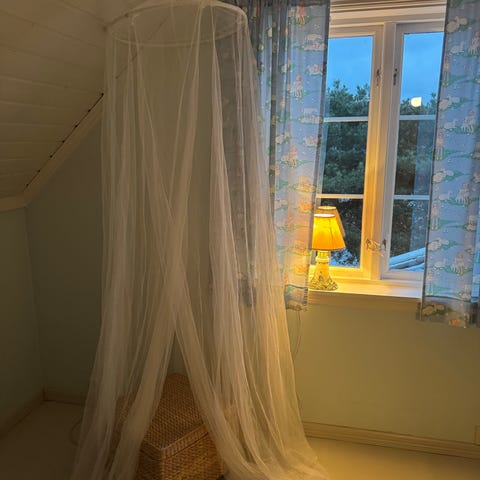 Grå sengehimmel. Passer både til babyseng og vanlig barneseng