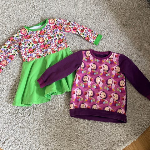 Vendbar håndsydd lue med Masha og Mishka