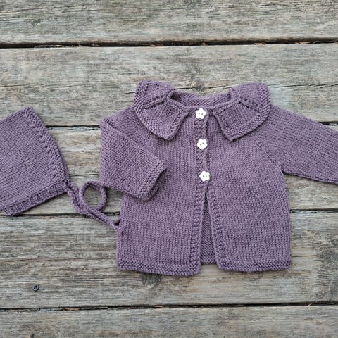 Babystrikk, baby strikk, hentesett, hjemmestrikk, lille dahlia