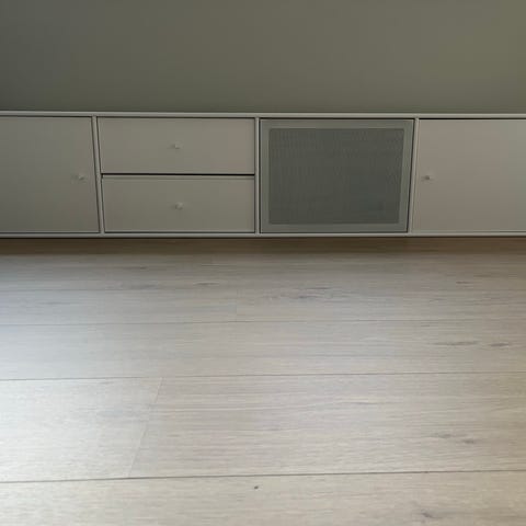tv-benk tvbenk tvbord mediabenk mediamøbel skjenk hvit høyglans moderne minimalisme oppbevaring skuffer skap stueinnredning oppbevaringsmøbel underholdningsmøbel skandinavisk interiør stuebord IKEA Bohus Skeidar Jysk Møbelringen Montana Bolia HTH HTH Interiør