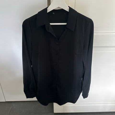 Svart, lang tynn skjorte med detaljer. Fra Vila. Str S.