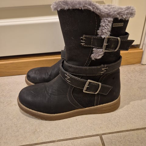 Lite og pent brukte mørk lilla støvletter i Str. 25 selges. Ser nesten nye it, bortsett frå eit merke framme på den eine skoen. Sjå bilde.