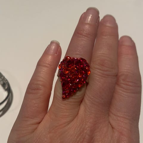 Bomsterring selges med rød stein/dekor. Kan hentes i Trondheim eller sendes om kjøper betaler porto.