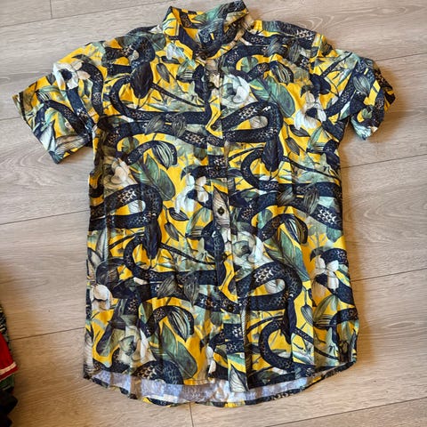 Størrelse: ca en størrelse Large not XL. Så en Large i litt løstsittende passform. Er en skjorte for dame, men kan nok sikkert brukes av menn også.