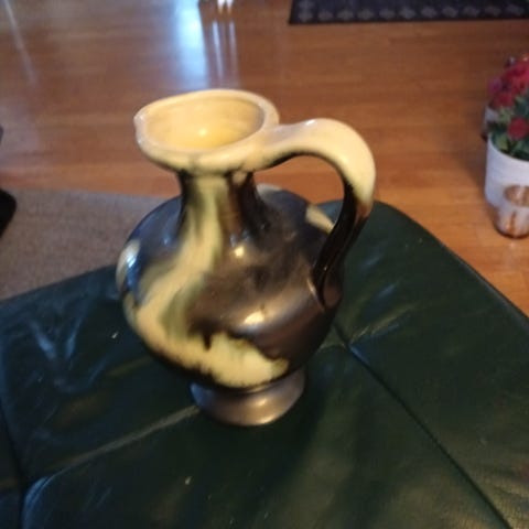 En helt spesiell retro 66 cm stående askebeger i brun plast, med gul metall boks øverst til å fjerne sigarett stumper, ubetydelig brukt