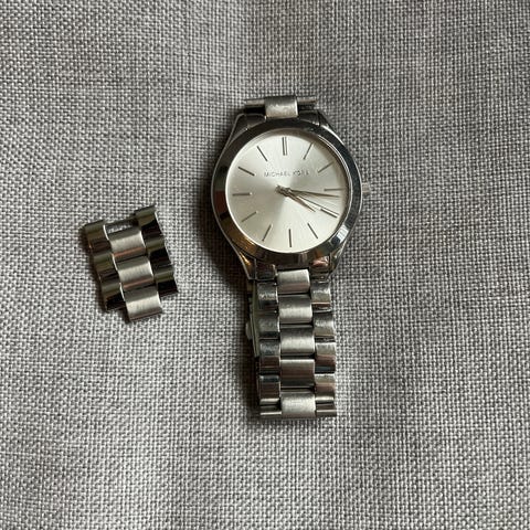 Selger denne tidløse dameklokken fra Michael Kors i rusfritt stål da den dessverre blir lite brukt. Pent brukt, men noen små riper her og der som er uunngåelig etter bruk. Behov for nytt batteri. Det følger med tilhørende eske, men uten pute inni esken 🌸