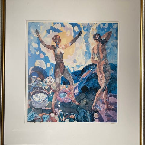 Arne Bruland. Signert Litografi. II/X. Kun 10 stk produsert og dette er nr 2. Brutto inklusive ramme 80 cm x 63, 5 cm. Netto 58,5 cm x 44, 5 cm.