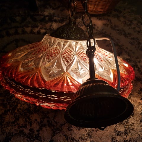 Dette er en super fin taklampe med rødt og messing (gull fargede detaljer)