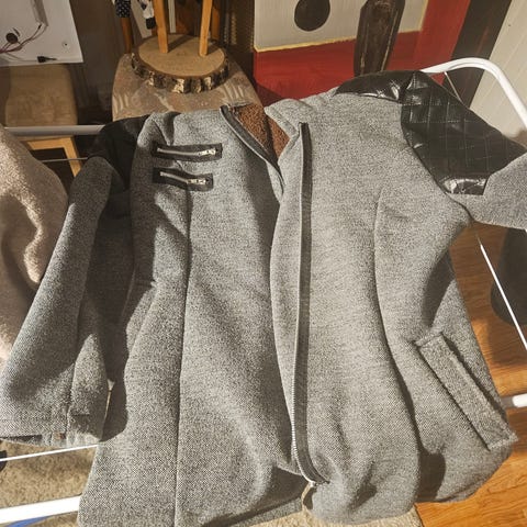 Lang jakke med matchende sjal str L