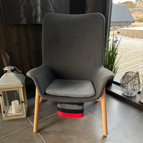 Fin og behagelig gyngestol fra IKEA, i nydelig beige farge og lyst tre. Må dessverre innse at den tar opp plass her som barna heller vil bruke til å leke…
