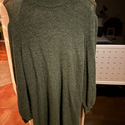Flott kjole i fin grønnfarge fra HM. Kjolen er i ett litt glatt stoff som sitter fint på kroppen. Stretch og behagelig på. Str L. Litt fleksibel i størrelsen,