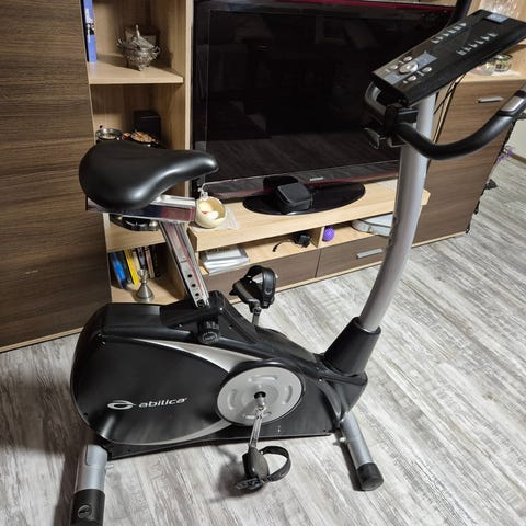 Meget flott hel svart ergometersykkel fra Abilica! Med mange ulike motstandsnivåer og treningsprogrammer! Trimsykkelen har også integrerte håndpulssensorer i styret for å komfortabelt overvåke pulsen under treningsøktene. Fungerer som den skal. Ingen mangler