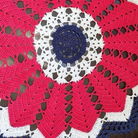Heklet og brodert lille løper i kombinasjon med tyn textile.67x31
