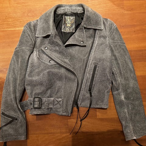 Svart bikerjakke i skinn fra Diesel Black Gold. Sølvfarget glidelås og 4 glidelåslommer. Spennestropp og glidelåsermer.