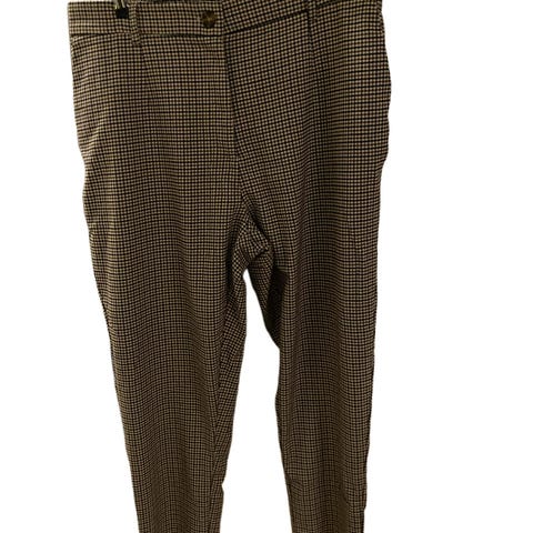 Buksen er høy i livet. Indre benlengde er 58cm. Den er 78cm rundt livet. Er fôret foran ned til kneet. Hovedstoffet består år 56% viscose, 33% ull, 9% nylon og 3%