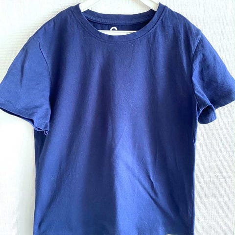 Blågrå tSkjorte str XS fra Orimark i blandet stoff 60% bomull, 40% polyester . Lengde ca 64 cm, bredde mellom ermene ca 47 cm