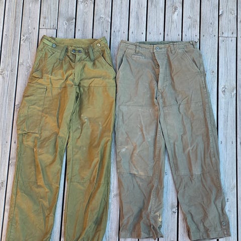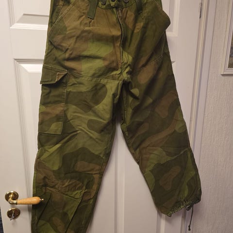 M98 orginal bukse i norsk kamuflasje fra Pioneer, lite brukte og sterkere i fargen. Hel og fin.