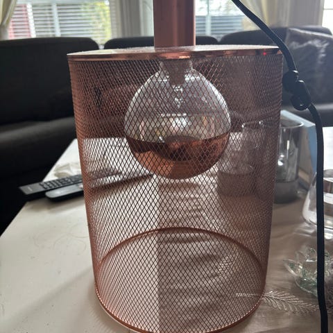 Dekorlampe med bur i rosegull.