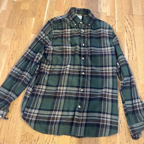 Skjorte i bomullsflanell i relaxed fit størrelse large. Fra HM. Brukt et par ganger, ingen slitasje.