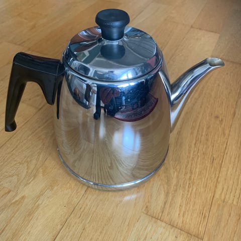 Polaris retro kaffekjele / kanne / vannkoker. Til å ha på plate. I stål, mener det er kobber i bunn.