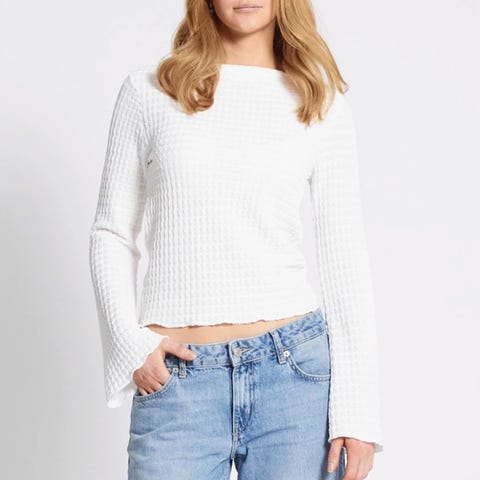 Jeg er en s og vil si at genseren er en s/m,kommer an på hvor lang en ønsker den.