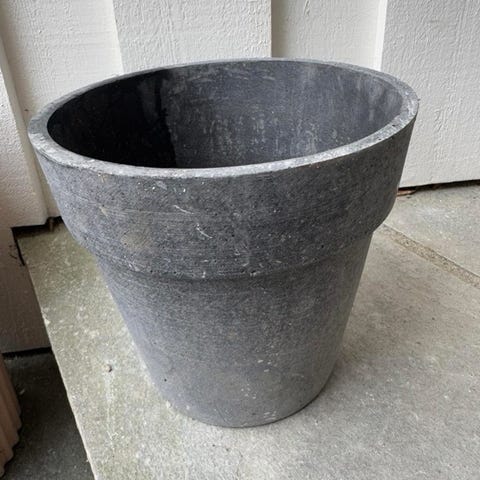 Stor potte av metall med plastinnsats