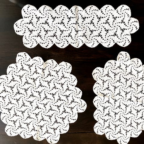 Heklet i bomullsgarn. Pris vil være forskjellig om de selges samlet el enkeltvis