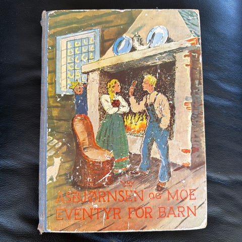 Asbjørnsen og Moe Eventyr for barn bok med omslag og illustrasjoner av Birger Mohr Johansen. Utgave fra E.W. Damm & Søn, Oslo, 1945. Inneholder samling av eventyr for barn.