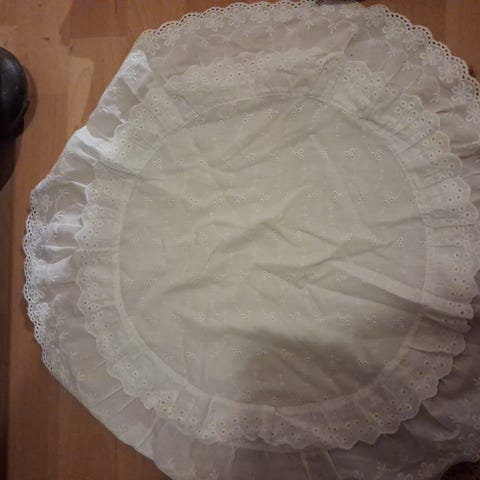 2 stk. (1 par) retro blårutete gardin bånd. Med blondekant og kroker. Forseggjort.