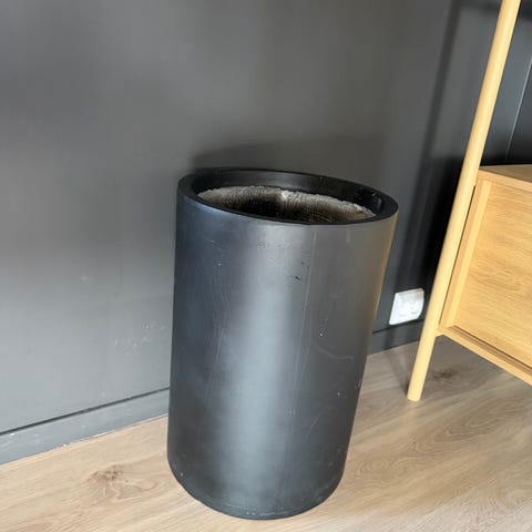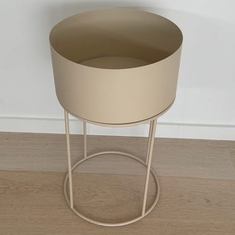 Massiv keramikk-krukke. Føtter i eik, gjør den enkel å flytte etter behov.
