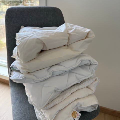 Selger to like, pent brukte fiberdyner til baby. Dynene er uten anmerkning.