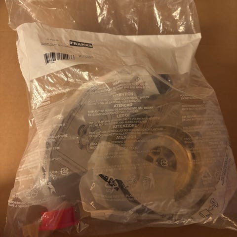 Helt ny kjøkkenvask, en vanlig størrelse på kummen, en liten utslagskum ved siden av samt en plate til å legge ting på. Den er fortsatt i esken fordi vi fikk feil da vi pusset opp et kjøkken. Det følger med en haug av poser med diverse greier jeg ikke vet hva er, så kikk på bildene.