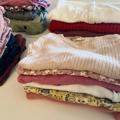 Fin klespakke til jente. Det meste i 86. Noe er i større str. Noe mye brukt annet nesten ubrukt.