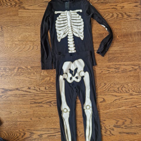 Dress/Halloween. Skjelett sett, genser og bukse.
