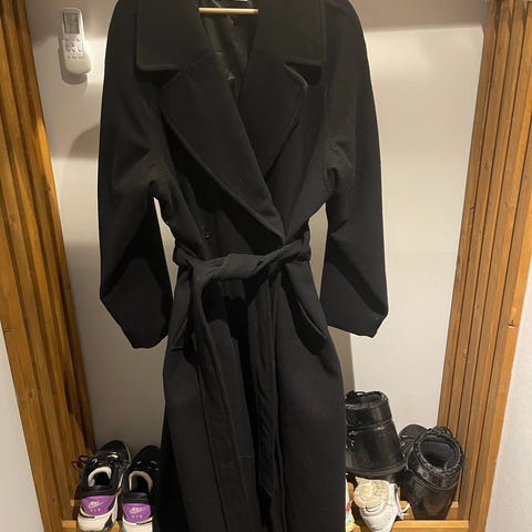 Pent brukt frakk fra Weekday i str M. Kjempe fin grønn farge, lett og behagelig å ha på. Lommer på sidene og søt hempe i kragen for å lukke. Jeg bruker vanligvis 38/40 og er 178cm høy.☺️
