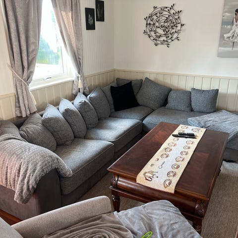 Jeg selger pene flotte fine store sofaen min fordi jeg ønsker meg en litt mindre sofa.