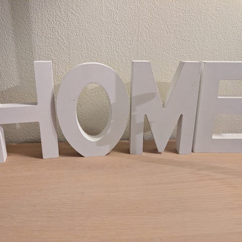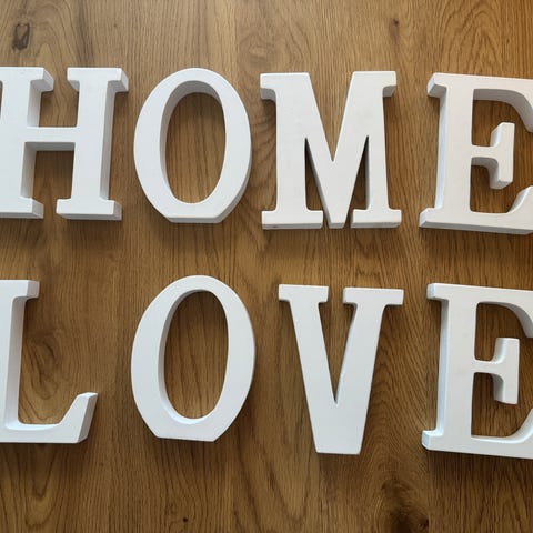"Family" dekorative, store trebokstaver. Fint å ha på hyllen eller i vinduskarmen f. eks. Shabby chic, vintage. Noen bruksmerker, men det gir en fin patina. Kan hentes, eller sendes mot at kjøper betaler frakt.