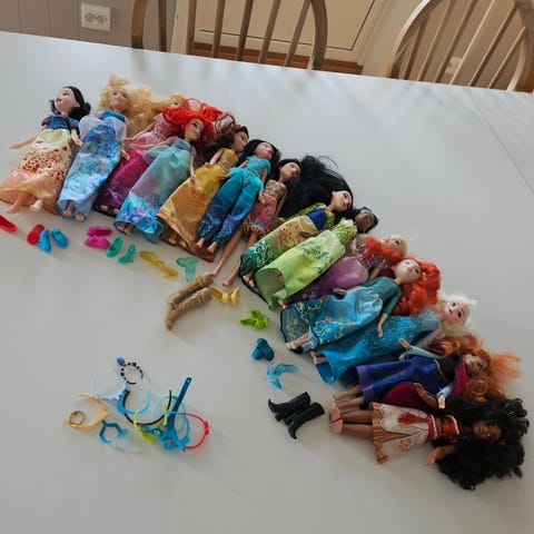 Jasmine, Belle, Snow White, Tiana, Ariel, Mulan, Rapunzel, Merida, Cinderella, Aurora, Pocahontas