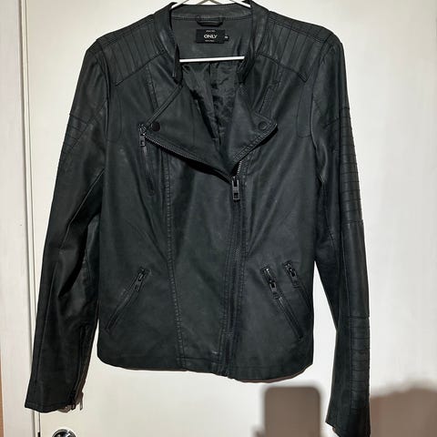 Tøff skinnjakke i svart skinn fra ONLY. Brukt i noen år