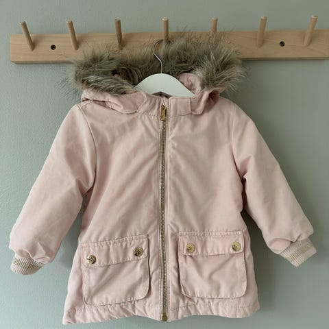 Vinterjakke fra Newbie str.74. Fint brukt, en flekk på den ene armen (tatt bilde av). Ellers uten anmerkninger. Gammelrosa.