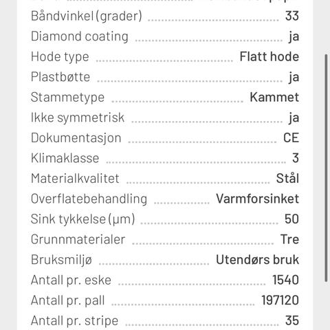 4 pakker spiker a 1000 stk selges, 100 kr per pakke.