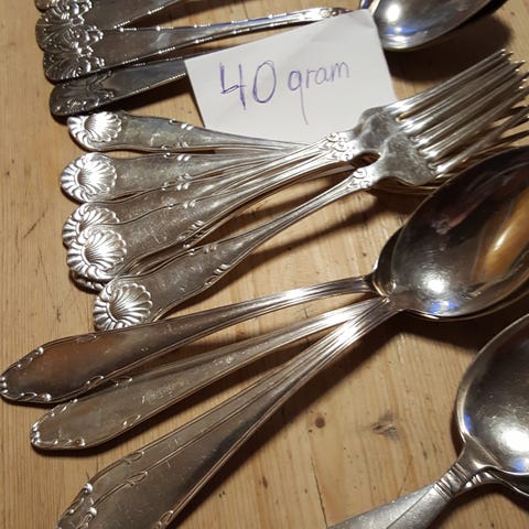Bestikket er i plett. Det betyr at delene er i uedelt metall overtrukket med sølv.