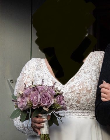Selger denne skatten av en brudekjole, som jeg giftet meg i i fjor sommer. Den er størrelse 46- jeg er en størrelse 44 og er 173 høy. Bilde 4 og 5 er uten heler under prøving. Jeg gikk med heler og innerkjole med ring. Det er en innsydd BH i kjolen og jeg fikk ikke plass til egen Bh under kjolen. Min bystestørrelse er 85D/DD. Kjolen har nydelige knapper i ryggen og et belte som kan tas av. Den er sydd litt inn bak over rumpa for bedre passform og kan sys noe ut. Kom gjerne og prøv den hjemme hos meg. Har også endel annet brudestæsj, se mine andre annonser. Kostet 17000kr ny. Jeg renser den før et eventuelt salg.