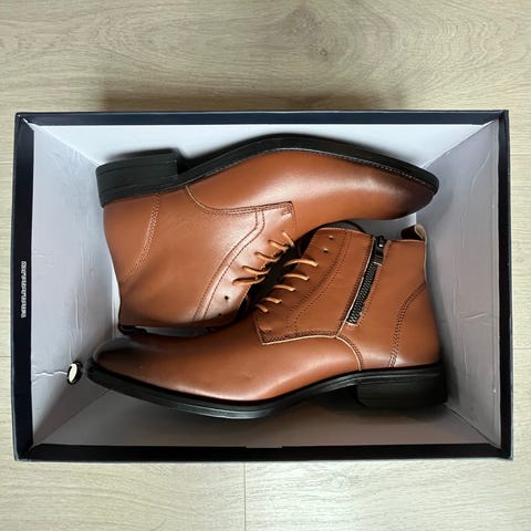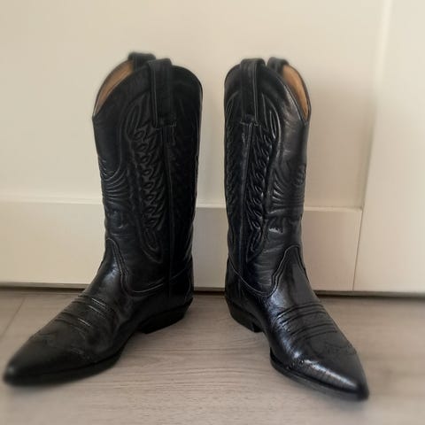 Lange skinnsålesko fra Boots med extra vantet og oljebestandig laken på sålen. Størrelse 42-1/2