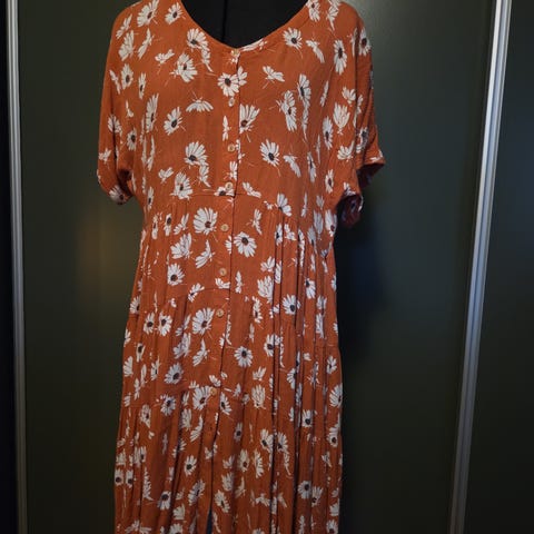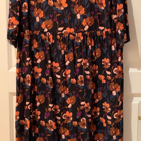 Pent brukt, fargerik, romslig og behagelig kjole fra Indiska selges rimelig. Str. M. Romslig i størrelsen.