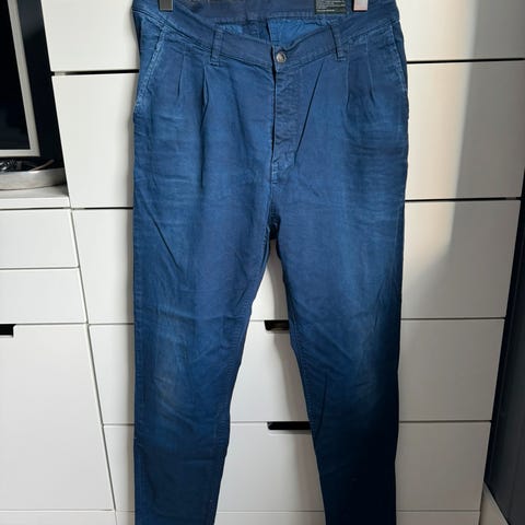 Pent brukte jeans fra Fifth Avenue Shoe Repair i størrelse 33. Buksen er ekstra stretchy, da den består av «bare» 82 % bomull, og hele 18 % elastan.